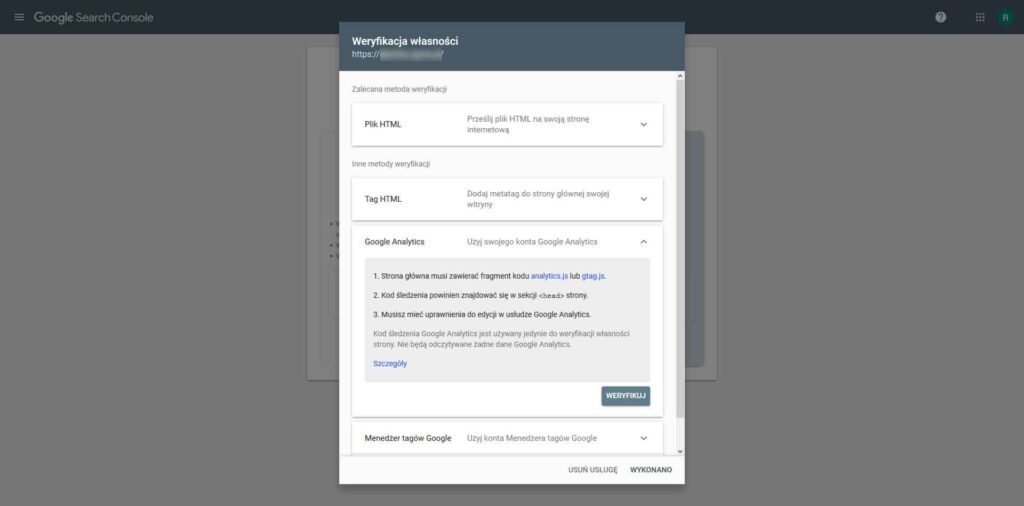 Weryfikacja Google Search Console z wykorzystaniem Google Tag Manager