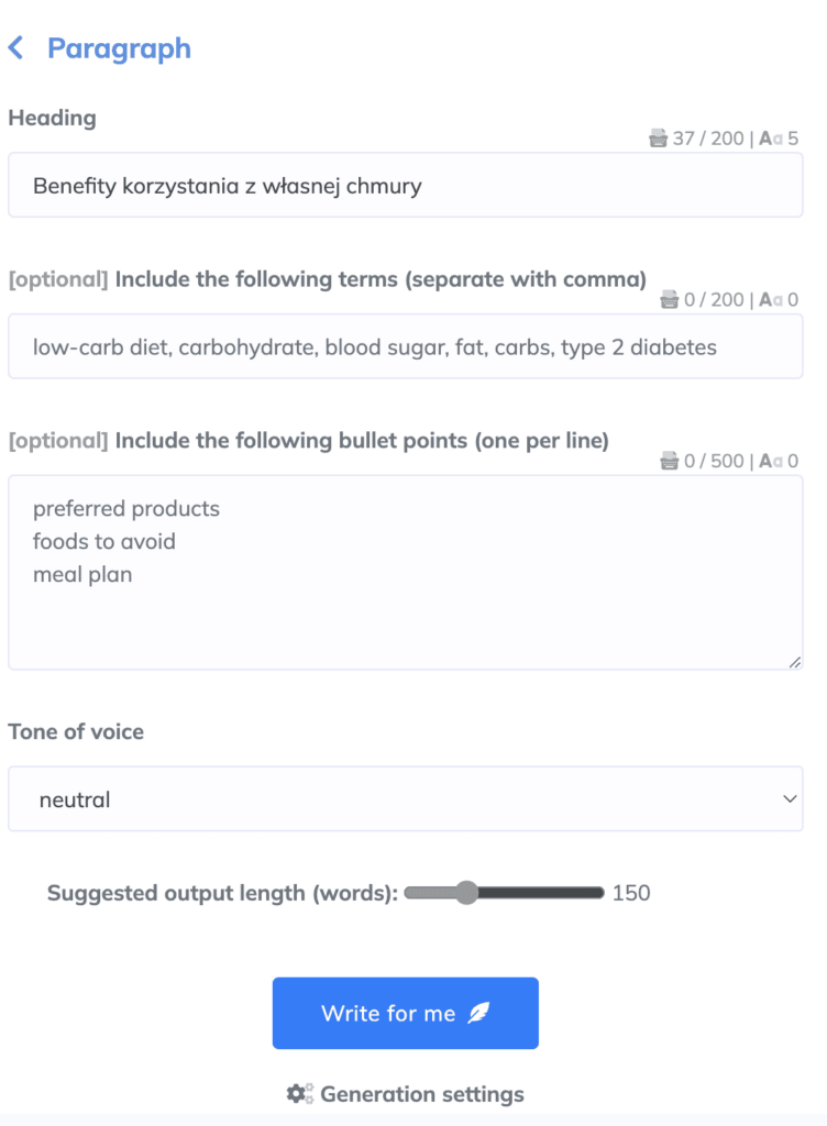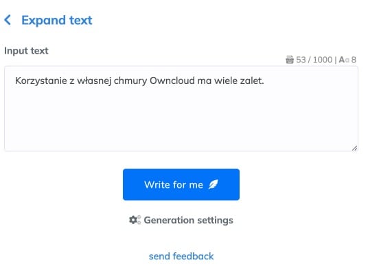NeuronWriter może pomóc rozszerzyć tekst. Czyli na podstawie jakiegoś fragmentu dokończyć tekst.
